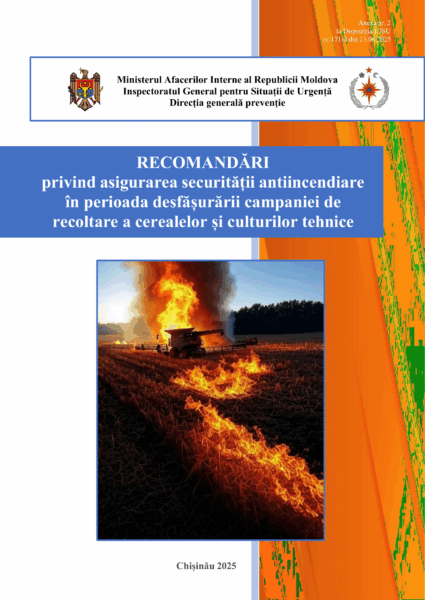 RECOMANDĂRI privind asigurarea securității antiincendiare în perioada desfășurării campaniei de recoltare a cerealelor și culturilor tehnice