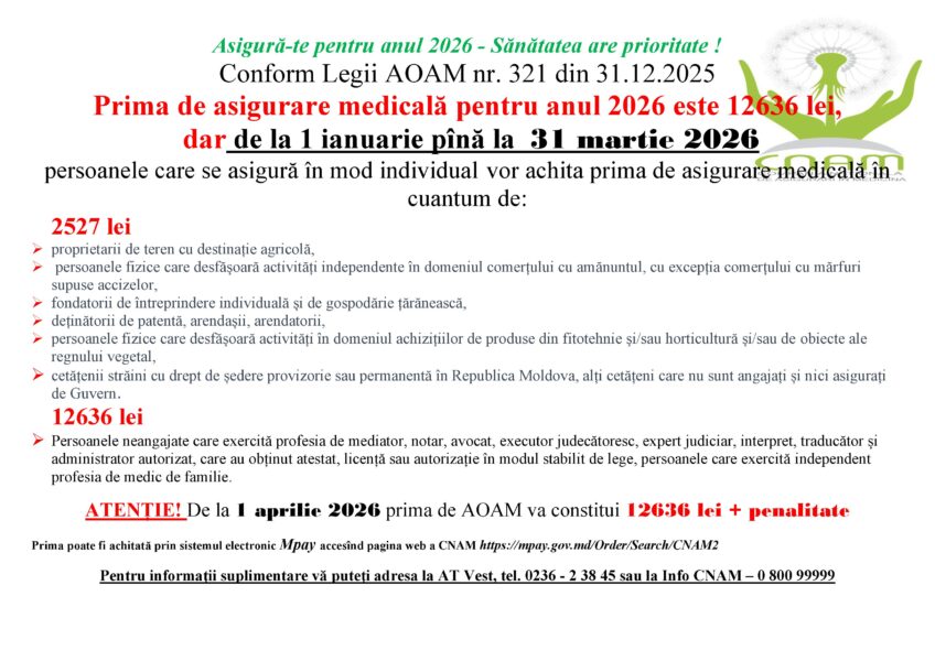 ATENȚIE! De la 1 aprilie 2026 prima de AOAM va constitui 12636 lei + penalitate