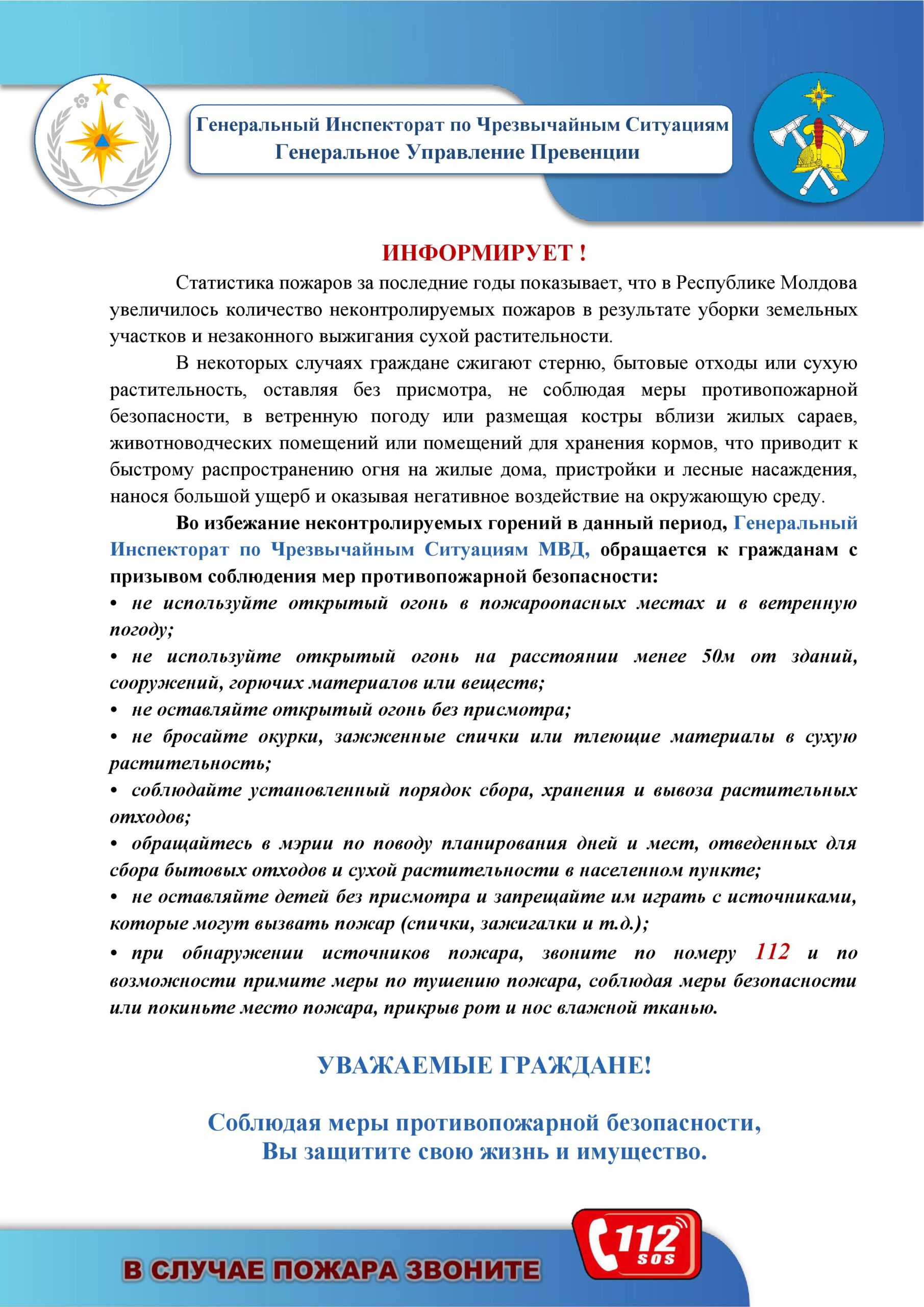 Anunț informativ privind prevenirea incendiilor de vegetație